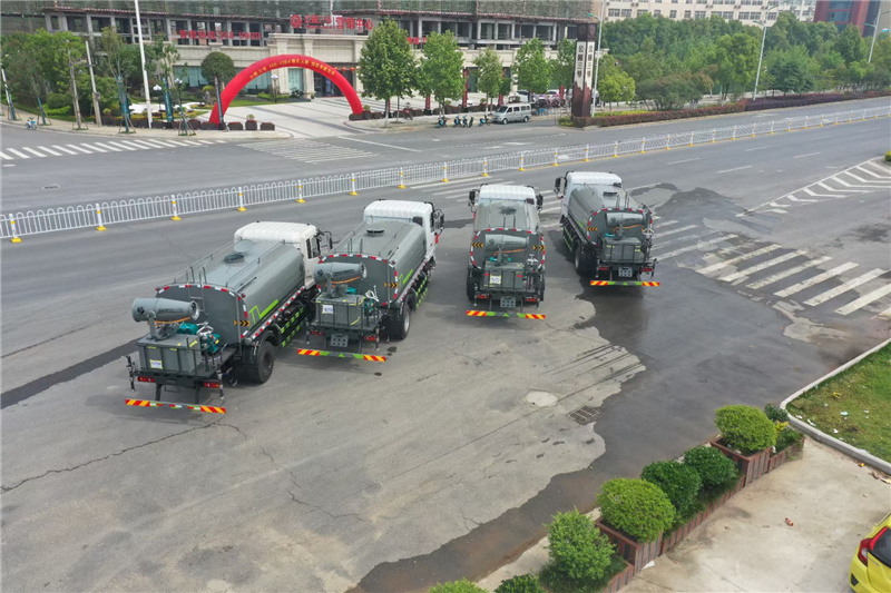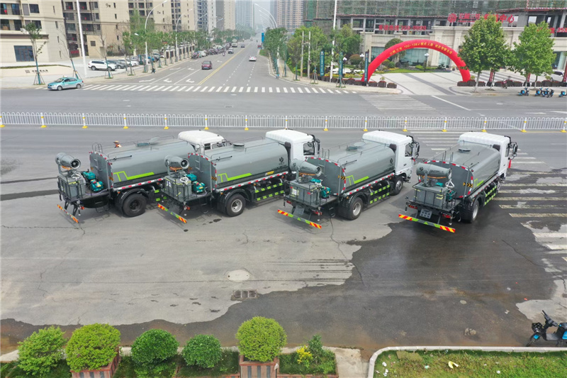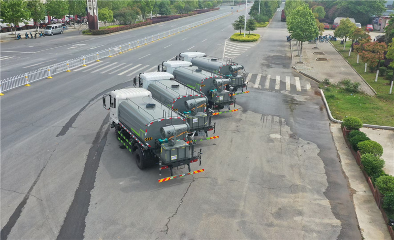 東風12噸灑水車-抑塵車-霧炮車,玉柴165匹馬力國六發動機 玉柴200匹馬力發動機 軸距3950,法士特8檔變速箱, 900R20鋼絲輪胎,電動玻璃, 中控鎖,ABS,原廠空調,多功能方向盤,氣囊座椅,罐體采用武鋼優質鋼材制作,專用功能為:前沖后灑,帶側噴, 罐體后帶工作平臺,平臺上安裝綠化灑水高炮,帶專用灑水車水泵,帶自流閥,帶消防接頭,平臺安裝30米霧炮, 配8千瓦柴油發電機,霧炮可以遙控此車為國六車型,發國六上戶手續,上戶免購置稅