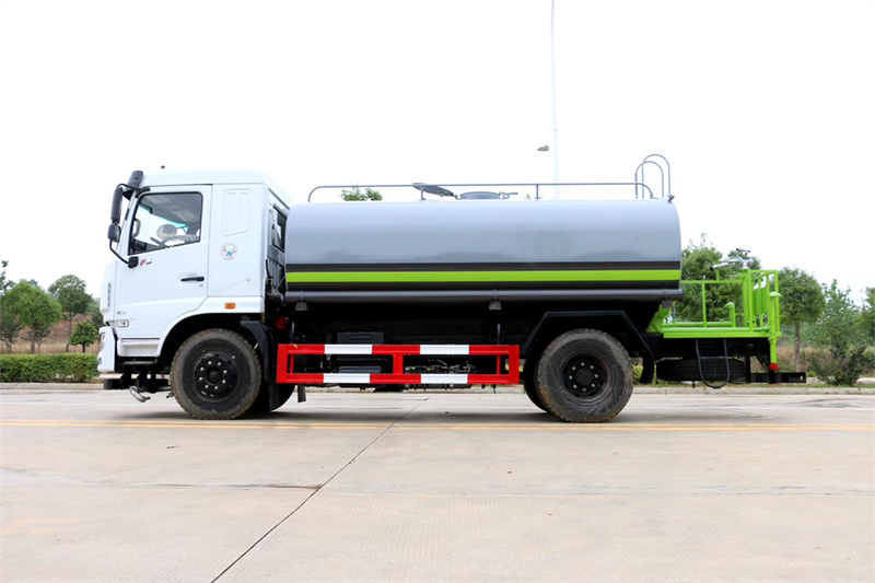 配備大功率專用灑水泵,泵可自吸自排,安裝過濾網,帶消防接口,可通過消防栓進水,帶自流閥,隨車選裝20米綠化卷盤,可噴灑農藥,罐體金屬漆。罐體有橢圓和方圓罐兩種,可根據用戶的要求定做