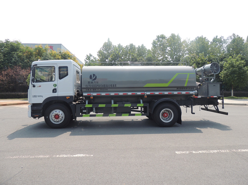 抑塵車配備大功率專用灑水泵,泵可自吸自排,安裝過濾網,帶消防接口,可通過消防栓進水,帶自流閥,隨車選裝20米綠化卷盤,可噴灑農藥,罐體金屬漆。罐體有橢圓和方圓罐兩種,可根據用戶的要求定做